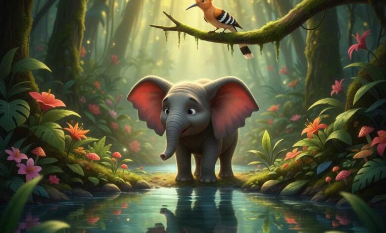 قصص للاطفال بعنوان الفيل الصغير ومرآة الغدير