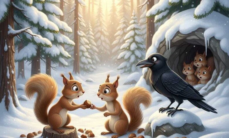 قصص أطفال بعنوان السنجاب مع كنز الشتاء المفقود